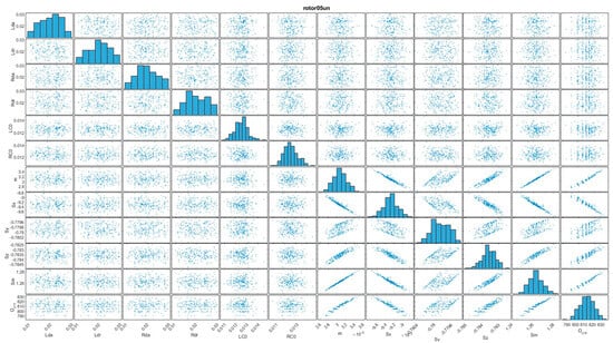 The combination of scatterplot matrices and histograms facilitated a comprehensive understanding of the behavior and performance of the four-rotor configurations. Leveraging these visualizations, subtle nuances and variations that might have otherwise remained undetected can be found, contributing to a better understanding of the investigated system.