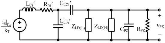 In other words, effectively shorts the MD. Since capacitance typically corresponds to large impedances at frequencies of interest for energy harvesting, a Norton equivalent is preferred to model this extreme. This is often performed in the SoA by saying the PT is “weakly coupled” without much further justification, but now (23) and (25) can be used definitively [1,4,7,16,17,18,19,20]. Note that PTs traditionally considered weakly coupled may not actually fulfill this approximation. Note also, that changing the load could change the applicability of the approximation.