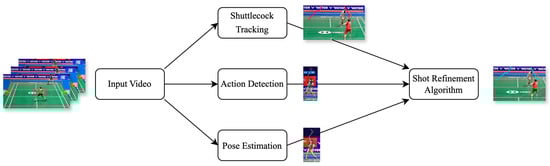 As mentioned in the last section, when the shuttlecock is occluded by the player’s body or exits the field of view for a significant duration, it could increase the detection errors of the shuttlecock’s flight trajectory. Therefore, relying solely on the shuttlecock’s flight trajectory to determine the precise timing of a stroke might lead to substantial inaccuracies. To alleviate these unstable detections, this study proposed the shot refinement algorithm. This module incorporates an action-detection model to locate the correct timing of a player’s hit.