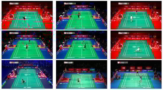 This study uses two datasets for experiments. The first dataset was obtained from publicly accessible videos provided by the Badminton World Federation (BWF) on YouTube, comprising 32 matches and 602 rallies across 8975 images. The second dataset was from the public dataset of the National University Competition in Artificial Intelligence, sponsored by the Ministry of Education, Taiwan. This dataset comprised 98,675 images from 354 matches and 6855 rallies. Overall, the datasets included 16 players, with a gender distribution of 7 females and 9 males. Figure 14 shows some sample images from BWF official videos.
