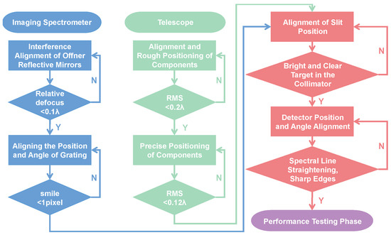 The assembly of the whole machine is divided into (1) assembling the two reflective mirrors of the spectrometer; (2) installing the slit, grating, and detector; (3) assembling the telescope; and (4) aiming the slit.