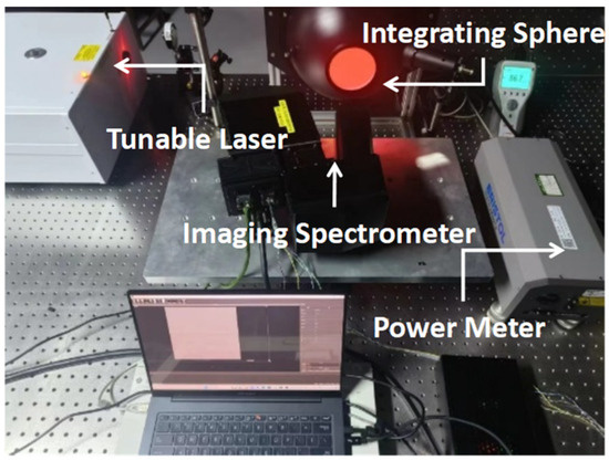 The spectral performance of the instrument was tested by measuring the first and last image positions in the spectral dimension, determining the range of the bands, and sweeping the spectrum with a tunable laser; the testing path is shown in Figure 26.