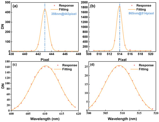 The test result of response at 356 nm (a). The test result of response at 865 nm (b). The test result of FWHM at 510 nm (c). The test result of FWHM at 610 nm (d).