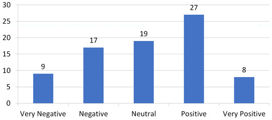 The subjective assessment of the soundscapes across Catalonia was still significantly biased towards positive scenarios [14]. The subset of 80 videos that was recorded in Barcelona, on the other hand, has a more balanced distribution in the global assessment of the soundscapes, as shown in Figure 3.