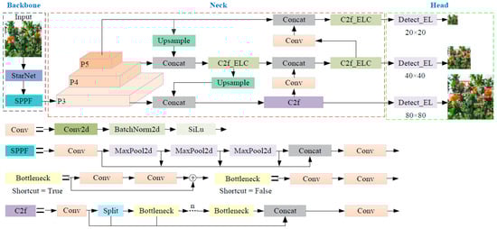 21] to replace the original network for feature extraction. The Neck layer employs the PAN-FPN design concept and introduces the Efficient Lightweight Convolution (ELC) to optimize the C2f module. The Head layer incorporates shared convolution and group normalization to design a lightweight detection head, Detect_EL (Efficient Lightweight). Finally, the PIoUv2 loss function [