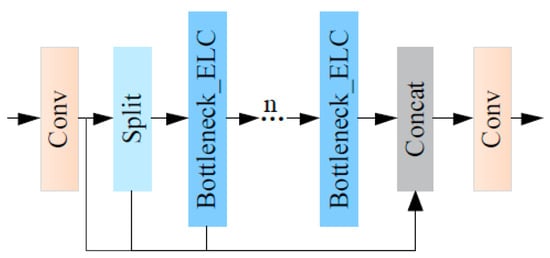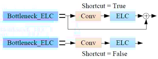 C2 is the computational volume of the ELC convolution module, it can be seen from Equations (3) and (4) that the computational volume of ordinary convolution with kernel size 3 is 1.7 times that of the ELC convolution module.