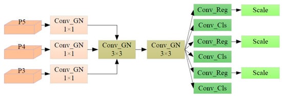 The detection of safflower filaments mainly operates in unstructured planting environments with low edge device computing power, requiring the detection model to have as few parameters as possible. The original YOLOv8 detection head requires two 3 × 3 convolutions and one 1 × 1 convolution to extract information for each head, resulting in a large number of model parameters and a traditional single-scale prediction structure, which performs poorly on small target safflower filaments obstructed in the field. Based on this, this study refers to the FCOS paper [