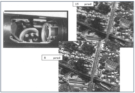 As the detection range of the optical equipment mounted on the platform expands, the performance standards for airborne optoelectronic platforms are becoming increasingly stringent. The Formula (1) indicates that once the optical system is established, higher accuracy in line-of-sight stability leads to clearer imaging and more stable tracking. Consequently, enhancing the accuracy of line-of-sight stability is crucial for long-distance detection and reconnaissance using long focal lengths. Figure 2 presents a comparison of optical system imaging under varying line-of-sight stabilization accuracies achieved by the aviation optoelectronic stabilization platform integrated into the Global Hawk unmanned reconnaissance aircraft. As shown in the figure, the information images obtained from the 15 µrad and 8 µrad stable accuracy airborne optoelectronic platforms are shown. We can see that the information image clarity obtained by the 8 µrad stable accuracy airborne optoelectronic platform is significantly better than that obtained by the 15 µrad stable accuracy airborne optoelectronic platform.