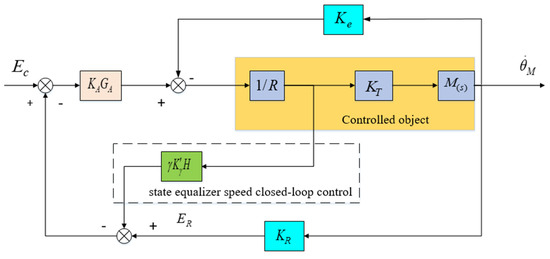 After adding a state equalizer velocity loop, its closed-loop response characteristics can be represented by the difference between the voltage signal corresponding to the velocity information collected by the gyroscope and the armature current . According to the schematic diagram in Figure 10, the transfer function of the state equalizer speed closed-loop system can be obtained as follows.