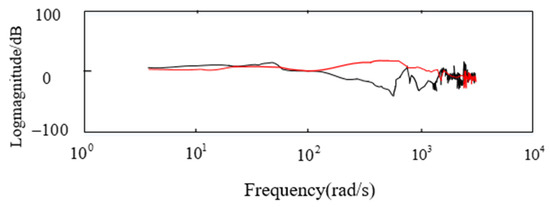 Given the input voltage signals of different frequencies on the azimuth axis of the aviation optoelectronic stability platform, the gyroscope data acquired from the experiments are processed using Matlab’s (2014.x) ident toolbox, resulting in the amplitude and phase frequency characteristic curves of the structural model of the aviation optoelectronic stabilization platform, as depicted in Figure 7.