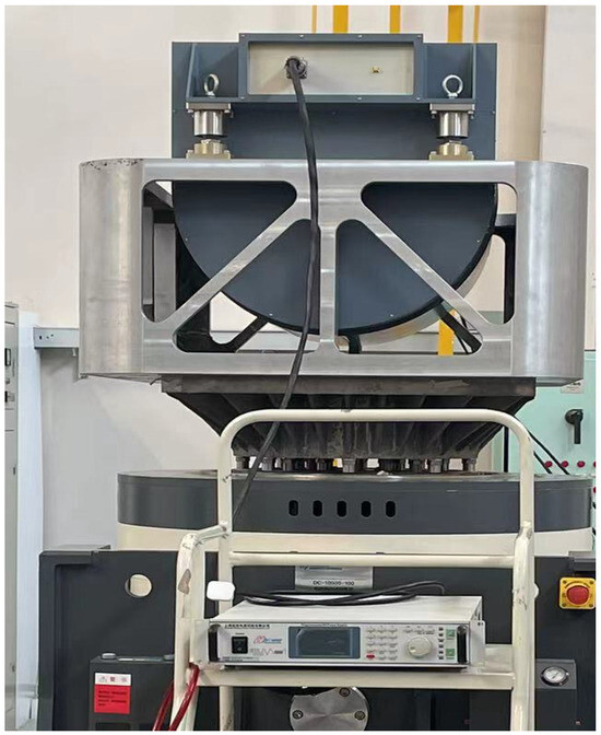 The experimental setup involves installing a two-axis, two-frame aviation optoelectronic stabilization platform system within a vibration testing device. This device facilitates random vibration tests to examine how the addition of a state equalizer to the PI + ARC controller impacts the suppression of mechanical resonance in the optoelectronic platform when structural changes occur due to variations in the platform’s structure. The specific operation is illustrated in Figure 20.