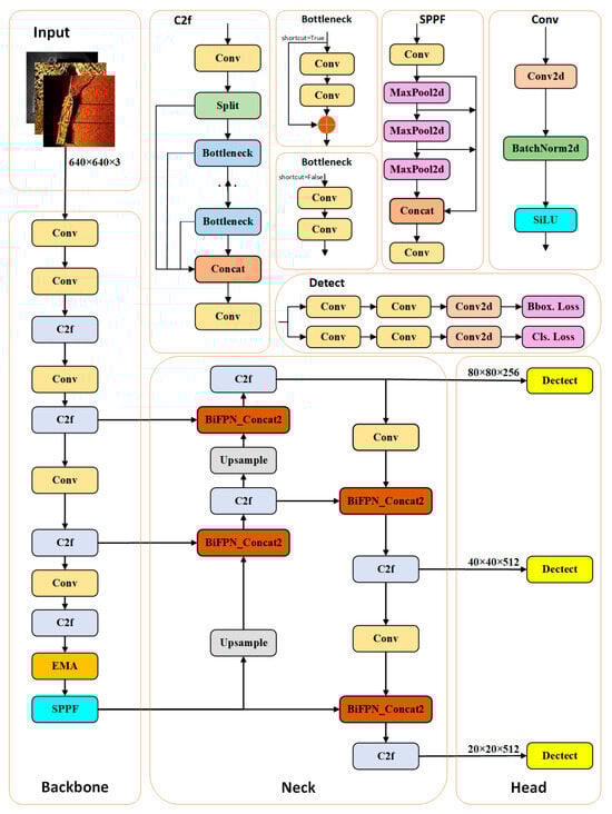 The efficient multiscale attention (EMA) mechanism [], as an innovative parallel attention mechanism, effectively improves the processing speed and performance of the model through its unique parallel structure. Compared with the traditional convolutional neural network (CNN), EMA shows higher efficiency in processing large-scale data, and its parallel convolutional feature makes the model training more rapid.
