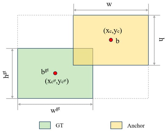 Due to the significant differences in target scales and the existence of many small targets in side-scan sonar images, current edge regression methods usually focus on considering the geometric relationship between the real frame (GT frame) and the predicted frame and calculate the loss by taking into account factors such as the relative positions and relative shapes of the frames. However, these methods ignore the influence of the frame’s inherent properties, such as its own shape and scale, on the frame regression, resulting in low detection accuracy when processing side-scan sonar images. To solve this problem, a border regression method focusing on the shape and scale of the border itself [], i.e., the Shape-IoU (shape-intersection-using ratio) loss function, is introduced. The method first analyzes the characteristics of border regression and concludes that the shape factor and scale factor of the border itself will have an impact on the regression results. Shape-IoU can calculate the loss by focusing on the border’s own shape and its own scale, so as to make the regression of the border more accurate, and the Shape-IoU is shown in Figure 7.