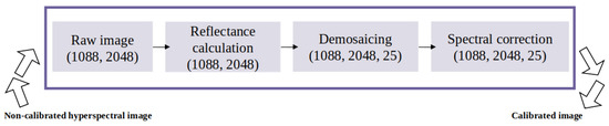 Our recognition pipeline involves a series of pivotal steps. The process commences with calibration, a trilogy comprising reflectance calculation, demosaicing, and spectral correction (Figure 4). These calibration steps play a crucial role in guaranteeing the accuracy and standardization of hyperspectral data.