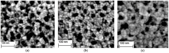 SEM image of TiO2NTs/AuNPs@ZIF−8 nanocomposites obtained at three different deposition times: 15 min (a), 30 min (b), and 45 min (c), respectively.