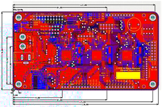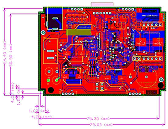 Given that the functions required in the interposer board are not particularly resource-intensive, to economize costs for this project, an embedded system designed in 2018 is being deployed as depicted in Figure 13. The fully assembled unit is showcased in Figure 14. This board was initially conceived to facilitate co-development in a multi-user environment, with each group focusing on distinct tasks while adhering to a common protocol, allowing separate processors to communicate with each other seamlessly. Ultimately, the integration of these isolated yet interdependent codes will resolve a complex problem. For this proposed work, only one processor will be utilized.
