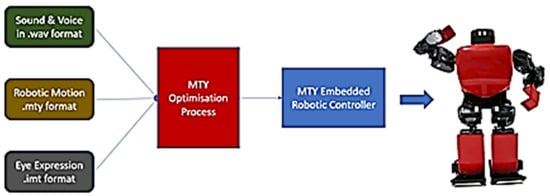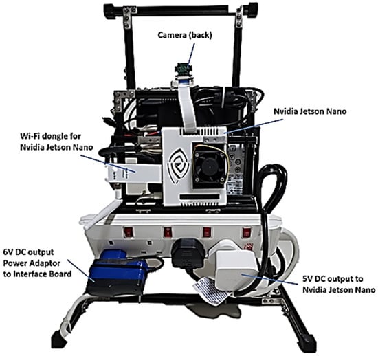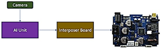 Consequently, the code on the robotic platform has to be modified to receive instructions from the onboard Mini-USB socket instead of relying on the robot’s manual selection. As the robotic controller operates solely on a single P8X32A multi-core processor, there was no additional code space available for expansion. Thus, an interposer board is necessary to manage the feedback from the AI unit before transmitting commands to the robotic controller. The process flow block diagram illustrating this workflow is depicted in Figure 12.