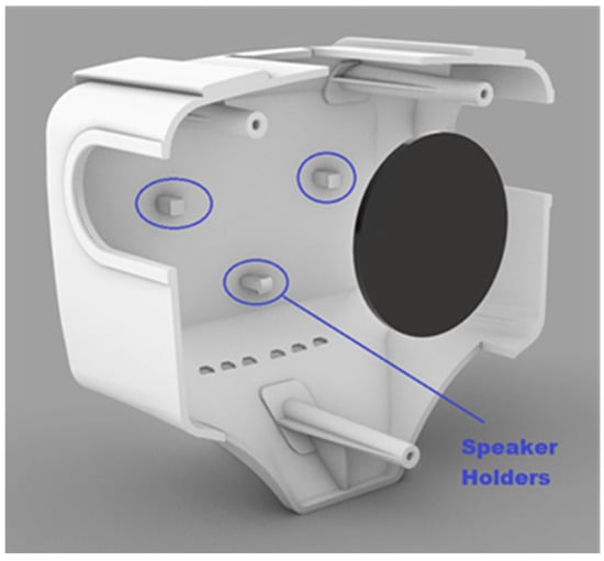Additionally, small outlets in the redesigned body have been designed to facilitate the exit of sound waves—an element absent in the previous design. This adjustment not only enhances functionality but also contributes to an improved aesthetic appearance. Utilizing Rhino3D, the new body design is crafted, showcased in Figure 9, featuring six 6 × 4 mm outlets angled at 45° downwards. This strategic positioning ensures that the sound waves exit from the front rather than the back, thereby providing clearer feedback to the user.
