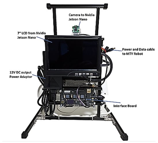 Interposer board interfacing with the AI unit and MTY robotic controller.