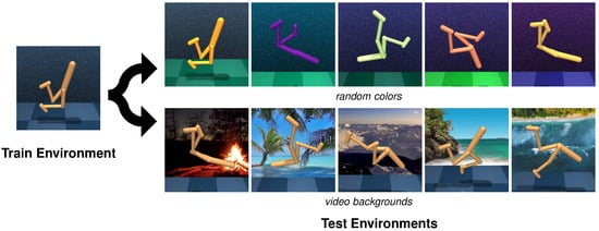 - Hansen, N.; Wang, X. Generalization in reinforcement learning by soft data augmentation. In Proceedings of the International Conference on Robotics and Automation, Xi’an, China, 30 May–5 June 2021. [Google Scholar]