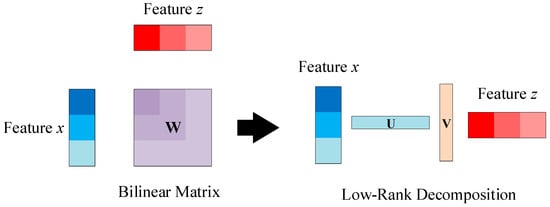 where and are low-rank decomposition matrices of and is the joint embedding dimension. Equation (28) can be further expressed in Hadamard product form, with a mathematical expression as follows: