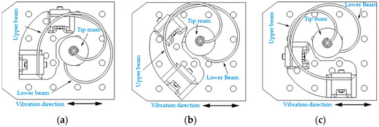 Another way to arrange the two beams is to stack them vertically one at the top of the other. In this case, nominally identical beams can be used, where the suspended mass is also attached to their tips and is located in between the two beams, thus limiting undesired torsional effects and unwanted rotational inertias of the tip mass. Figure 9 depicts a general mechanical assembly arrangement of this configuration.