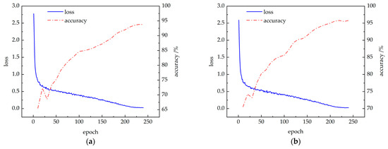It can be seen from Figure 10 that the CBAM-MFFAR model is composed of two branch networks, namely the CBAM-SlowOnly network, which extracts the RGB modal features, and the CBAM-PoseC3D network, which extracts skeleton modal features. The RGB modal feature-extraction branch can provide rich spatial information, including the exterior and color of objects and people; the skeleton modal feature-extraction branch can provide detailed motion information by inputting a stack of skeleton heatmaps that have a higher sampling frequency. Before training the feature-fusion model, the two branch networks were pre-trained separately. The weights obtained from the pre-training were used to initialize the CBAM-MFFAR model to improve the convergence speed of the fusion model.