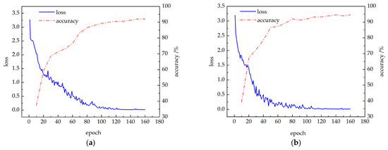 The CBAM-PoseC3D and CBAM-MFFAR models were validated on the UAUM dataset, with the training results shown in Figure 13. It can be seen that the loss values of each recognition model rapidly decrease at the beginning of the training and gradually stabilize. Simultaneously, the recognition accuracy of the CBAM-PoseC3D and CBAM-MFFAR models also increases rapidly after the start of training, converging at 92.0% and 94.6% at the 150th and 140th epochs, respectively.
