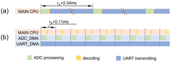 Comparison of the system cycle. (a) The cycle of the system without DMA. (b) The cycle of the system with DMA.