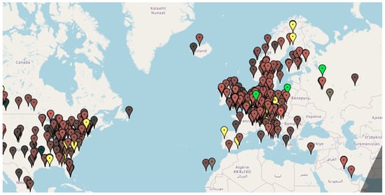 Users can access KiWiSDR receivers from any location worldwide using a web browser. The web interface offers a plethora of features, enabling users to tune the receiver to various frequencies, adjust the receiver bandwidth, employ different methods of analog and discrete demodulation, and decode information transmitted across diverse communication and navigation systems. Figure 3 shows a Kiwi wideband shortwave radio receiver map [].