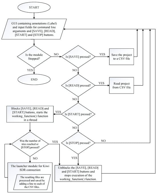 Figure 4 and Figure 5 show the working algorithm of the module for connecting to KiWiSDR and processing and recording the received information.