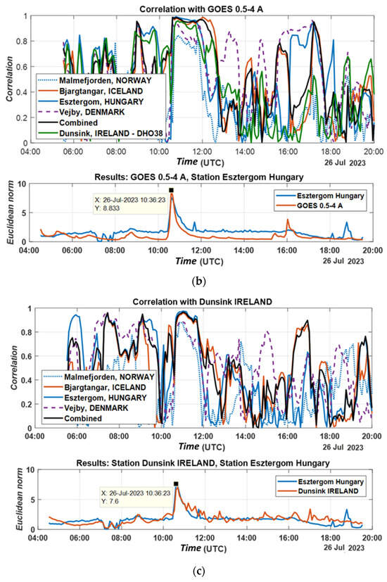 (a–c) Correlations for solar activity on 26 July 2023.