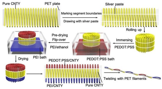 Schematic diagram of the preparation process of thermoelectric yarns [101].