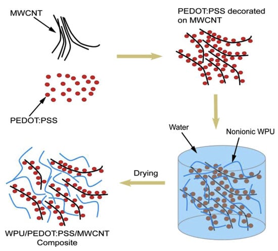 Pure PEDOT is not soluble in water. However, the unique water processability of PEDOT:PSS is attributed to the sulfonate groups on the PSS, which allows for aqueous dispersion. However, the electric conductivity of PEDOT:PSS films at around 10−2 S cm−1 is still insufficient to meet the demands for many applications. Enhanced performance can be realized by manipulating the film’s structure and polymer alignment through the use of high-boiling-point solvents or acidic treatments.