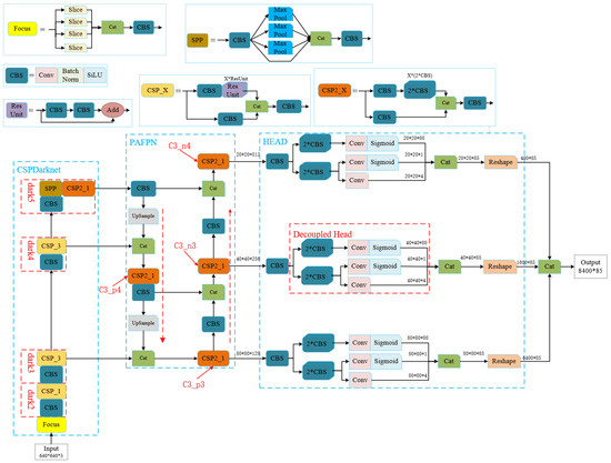 In Figure 5, CSPDarknet53 is selected as the backbone network to extract high-level semantic information from the image, which solves the problem of gradient repetition during optimization. Next, path aggregation fusion (PAFPN) is used to fuse the features extracted by the backbone network. PAFPN contains a top-down path to fuse semantic information of low-resolution features and a bottom-up path to fuse spatial information of high-resolution features, which helps improve the performance of object detection. After PAFPN, three fused features are obtained, with scales of 20 × 20, 40 × 40, and 80 × 80, respectively. In the final stage, YOLOX uses three parallel and decoupled head networks to detect students, and to output bounding boxes, and confidence scores for the bounding boxes of each feature grid.