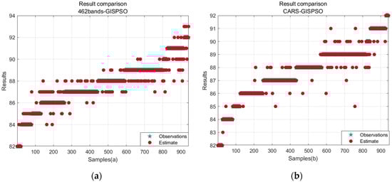 Although initial preprocessing and feature extraction were performed on the hyperspectral curves, redundant or critical bands may be inadvertently overlooked by different feature selection algorithms during model training. Nonetheless, the accuracy of the flavor value determination was as high as 96%, which underscores the strong confidence in the feasibility of hyperspectral-based flavor analysis of rice. This confirms the optimization capability of grid search iterations within the PSO framework, especially when the number of samples is large or the correlations are complex.