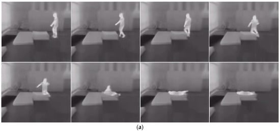 Example of image data contained in a complete action sample from IR-Fall dataset: (a) Example of TIR fall data, (b) Example of NIR fall data.
