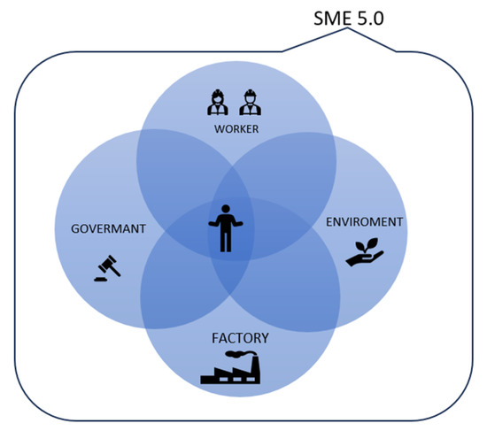 According to the World Bank, small and medium-sized enterprises (SMEs) represent approximately 90% of businesses and more than 50% of employment worldwide. Small and medium-sized enterprises are mostly described by the number of employees [22]. The number of employees in a small enterprise is 10 to 49, and for medium-sized enterprises, it is between 50 and 249 employees. Despite their prominent representation in numbers, SMEs are more prone to problems [9]. For that reason, it is important to help SMEs recognize the opportunities that Industry 5.0 brings to them and help them determine how to survive and thrive.