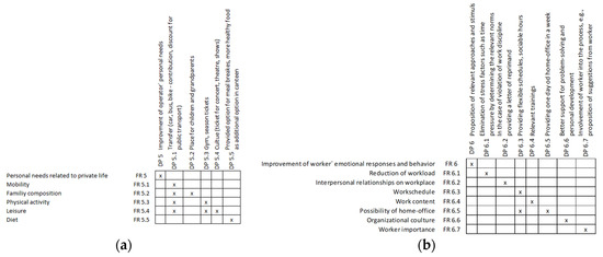 Matrices of (a) personal needs related to private life and (b) worker’s emotional responses and behavior.