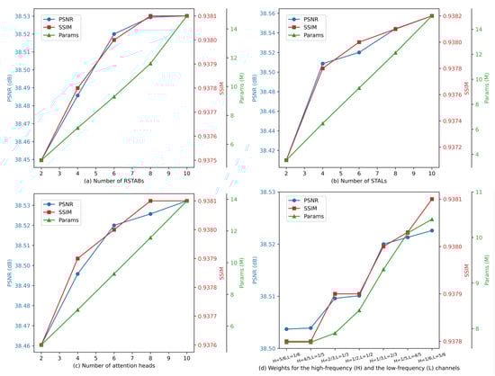 where denotes the STAL in the RSTAB, and represents the feature map output in the STAL of the RSTAB. represents the final 3 × 3 convolutional layer in the RSTAB.