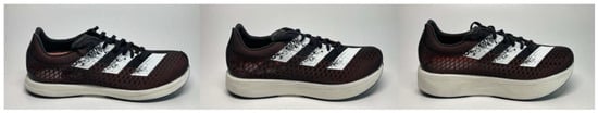 Three different experimental shoe conditions were specifically developed and manufactured for this study. All shoes featured the same upper, outsole, and carbon plate embedded into the midsole. While in each shoe condition the midsole foam (TPEE) was identical, the stack heights in the three shoe conditions were 25 mm, 35 mm, and 45 mm (see Figure 1). Shoes were produced in sizes UK 8.5 and UK 10.5 to increase the potential participant pool.