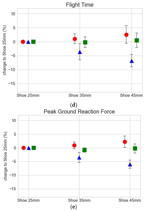 | Peak Ground Reaction Forces | Shoe 35 mm | 0.9 | 1.27 | −3.5 | 1.85 | −0.8 | 0.76 |