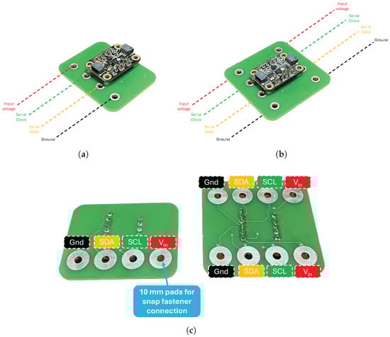 The snap fasteners allow the integration and connection of the sEMG electrodes to the developed PCB. Figure 8 illustrates the resulting module, which includes all the aforementioned circuits.
