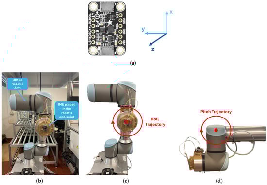 Table 7 displays the RMSEs for each movement and angular velocity evaluated. The RMSE value for the pitch movement at 40°/s was approximately 3.45°, corresponding to a 0.96% error in relation to the full measured angle range (360°). However, when the angular velocity was increased to 120°/s, the error significantly increased to 10.11°, which corresponds to 2.8% of the movement range. Nevertheless, it is noteworthy that this increased inaccuracy is not concerning, since the angular velocity of forward head movement never reaches such high values. In terms of the roll angles, the RMSE value at 40°/s was 6.09°, which is similar to the RMSE for 120°/s at 6.007°. Figure 21 shows the temporal representation of the angles measured by the team’s system overlaid with the angle data acquired by the UR10e robot’s encoder for each movement (roll/pitch) and angular velocity.