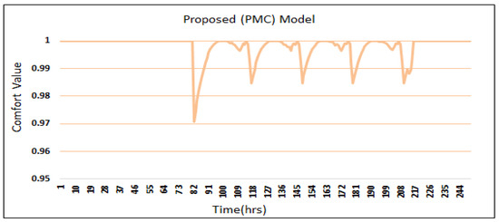 The third point where the PMC model improves itself is the OCI. During the time of power failure, the OCI of the PMC model is not disturbed and achieved a high level (i.e., 1). This implies that the proposed PMC model decreased energy utilization without compromising users’ OCI, which is the fundamental objective set and accomplished by the PMC framework.