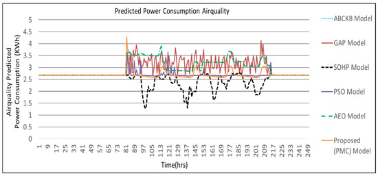 Figure 11 presents the effect of power consumption in the case of air quality. Here, the PMC framework utilized the lowest power as compared to its corresponding GAP framework [