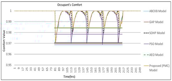 The two prime design goals in the upcoming smart building sector are the user’s comfort and energy management. The fundamental reason is that power consumption utilization rises every day due to enormous growth in domestic applications, while its sources of generation are restricted and expensive. The customer plans to utilize minimum power without compromising the OCI, which constitutes lighting, air quality, and temperature. The importance of low power utilization without disturbing the user’s comfort is an attractive issue for researchers. This creates a big trade-off between power utilization and user comfort [