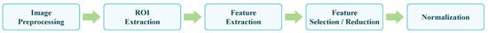 The feature extraction workflow can be seen in Figure 8, and then the normalized data will be fed into machine learning models. Commonly used machine learning models include supervised learning and unsupervised learning. In supervised learning, common classification models include logistic regression, decision trees, k-nearest neighbor (KNN), support vector machines (SVMs), random forests (RFs), naïve Bayes, and so on. In unsupervised learning, k-means clustering is usually performed on unlabeled data.