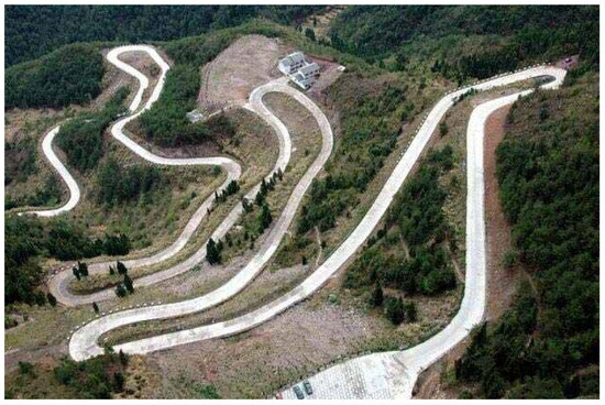 A mountainous road: the mountain road is narrow and winding (an example from a web resource [4]).