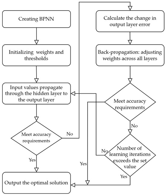 - Ensure that the initial weights and threshold indicators of the BPNN model are optimal, then perform gradient descent to search the solution space for these parameters and update the weights and thresholds.